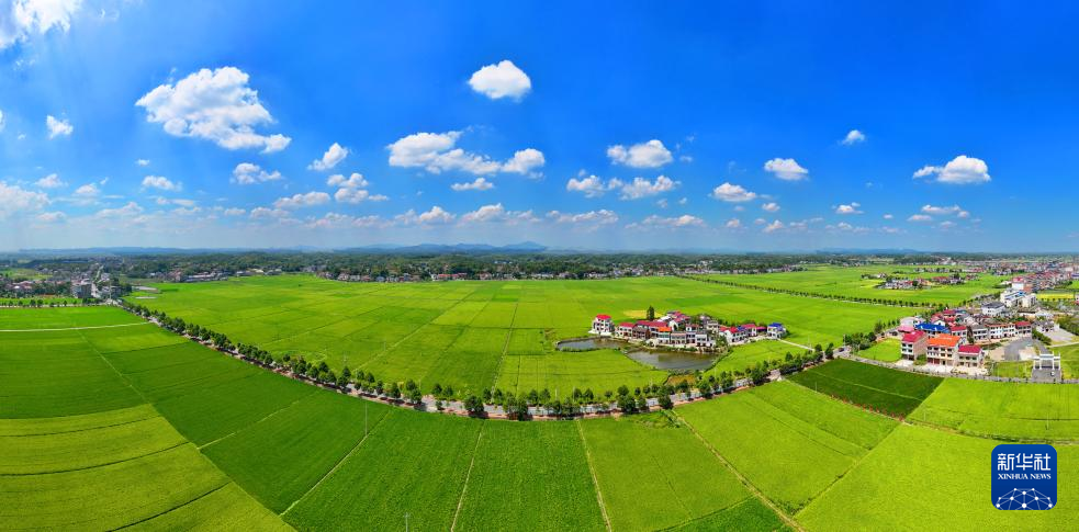 9月16日,在湖南省衡阳市衡山县白果镇拍摄的田园风光(无人机照片)。
