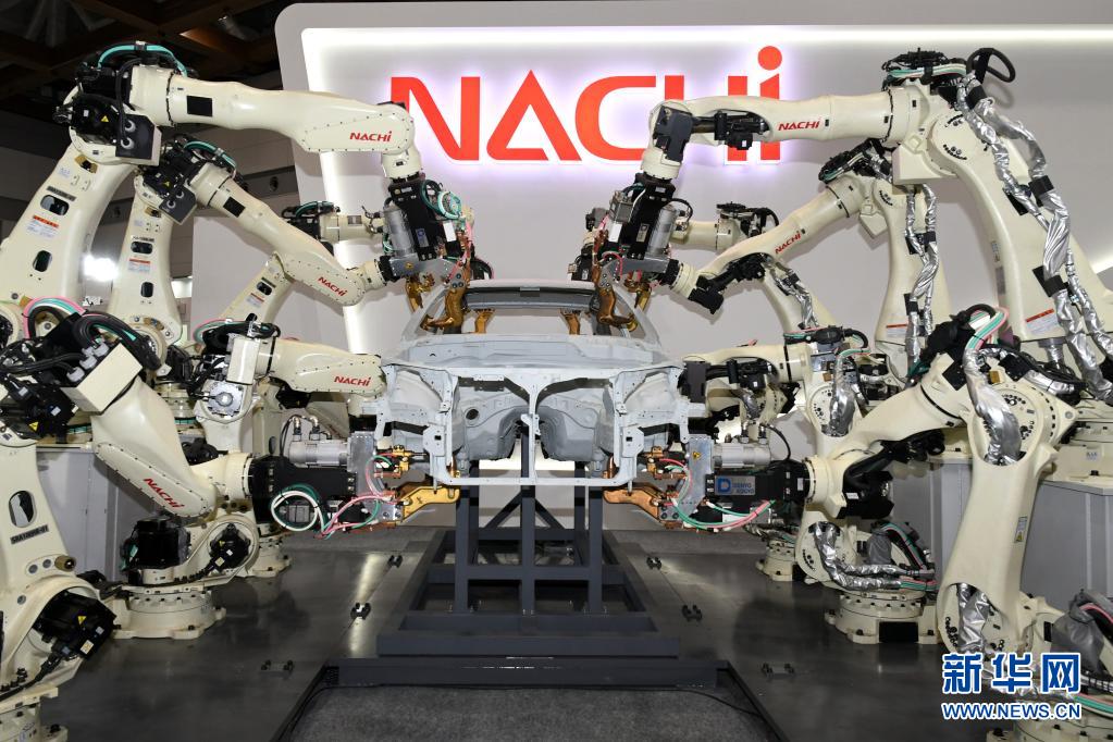 这是在日本东京国际展览中心拍摄的日本不二越公司的汽车工业机器人(2019年12月18日摄)。新华社记者 华义 摄
