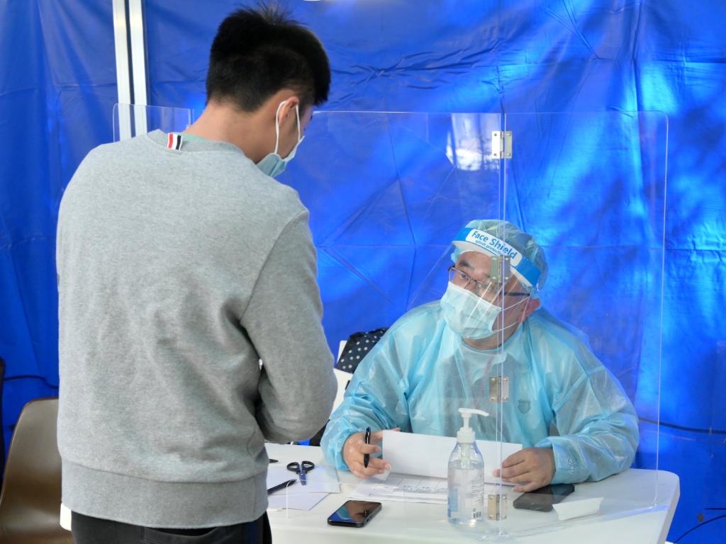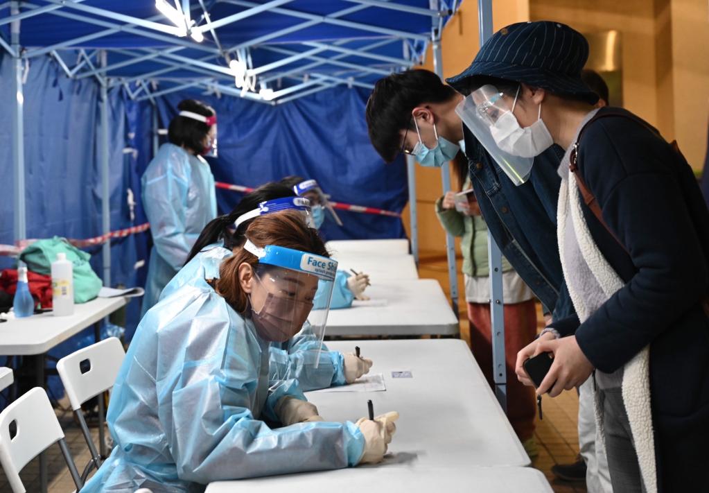 正在进行围封或强制检测的葵涌邨居民在登记(资料照片)。新华社发