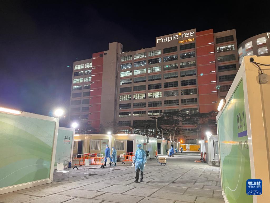 入夜后的青衣方舱医院灯火通明,工作人员24小时轮班工作(3月12日摄,手机照片)。新华社发