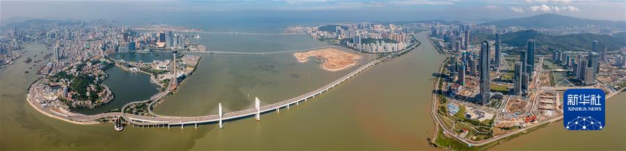 这是5月6日拍摄的澳门和横琴景色(无人机全景拼接照片)。新华社记者 张金加 摄