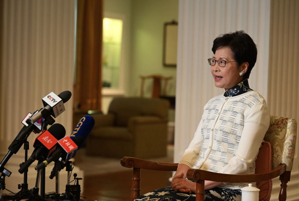 香港特区行政长官林郑月娥在礼宾府接受记者采访。新华社记者 金良快 摄