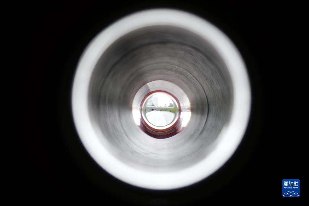 这是透过香港故宫文化博物馆大门门钉看到的门前地面(2022年5月10日摄)。 新华社记者 王申 摄
