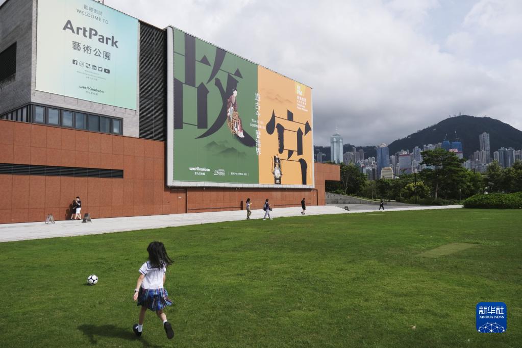 2022年6月17日,女孩在香港故宫文化博物馆旁的草坪上玩耍。 新华社记者 王申 摄