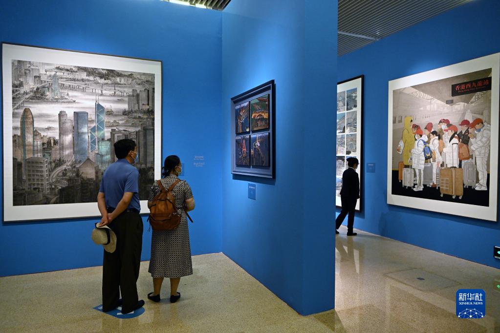 新华社北京6月24日电(记者陈舒)6月24日,“笔墨丹青绘湾区——庆祝香港回归祖国25周年美术作品展”在中国国家博物馆开幕。