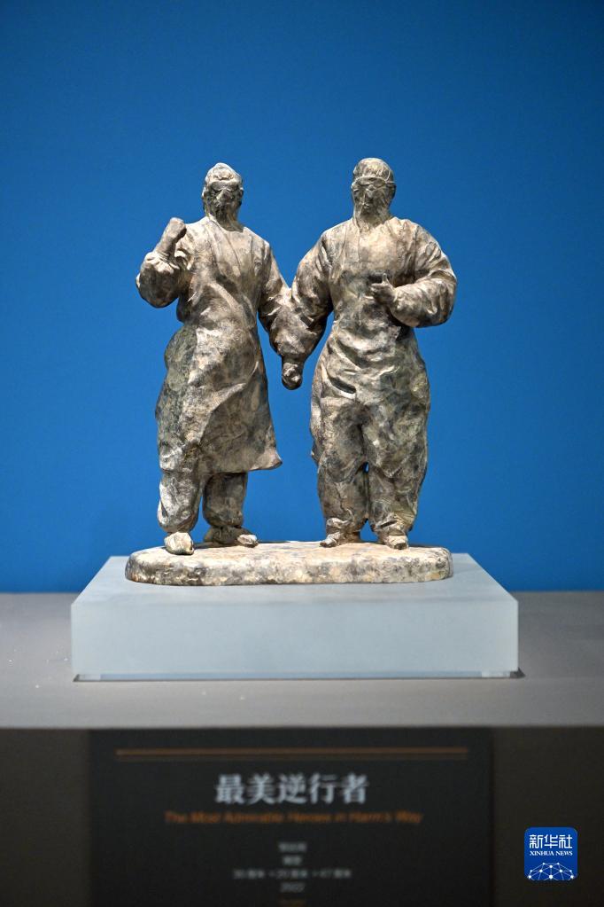 这是展出的雕塑作品《最美逆行者》(6月24日摄)。 新华社记者 李鑫 摄