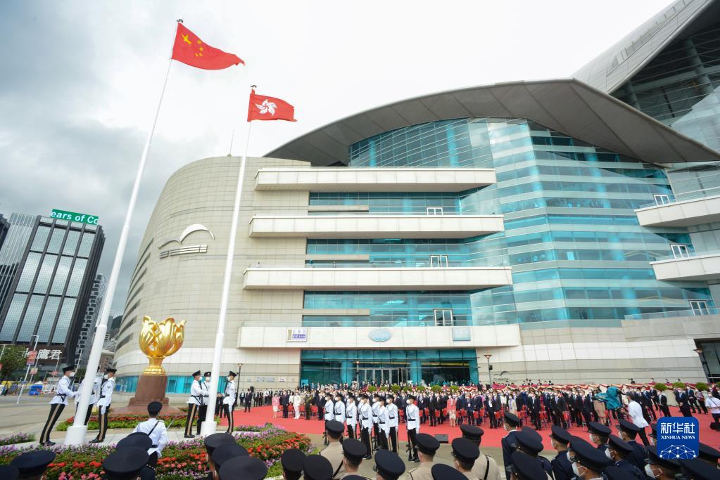 7月1日,香港特区政府在金紫荆广场举行升旗仪式,庆祝香港回归祖国25周年。新华社发
