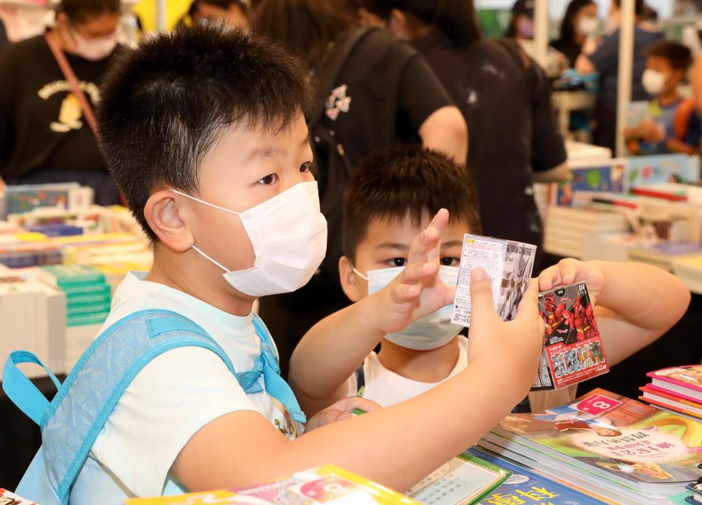 小朋友在香港书展现场。新华社记者 吴晓初 摄