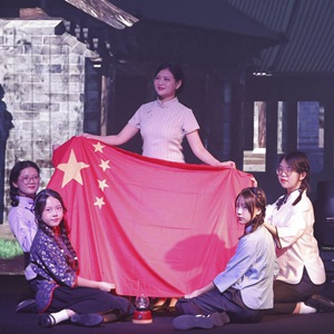 9月25日,演员演出以澳门升起第一面五星红旗的真实故事为蓝本改编的短剧《五星红旗》。新华社发