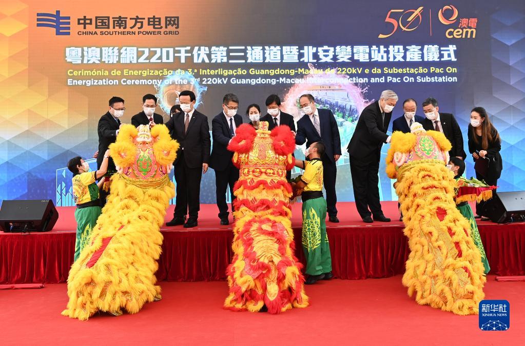 11月25日拍摄的粤澳联网220千伏第三通道正式投产仪式现场。 新华社发(赖增鹏 摄)