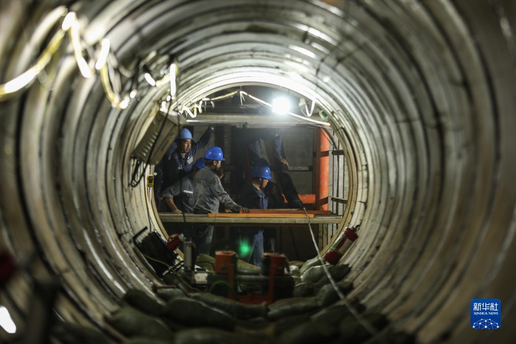 南方电网公司项目人员在粤澳联网220千伏第三通道电缆管廊内进行施工作业(2019年5月13日摄)。 新华社发(杨惠平 摄)