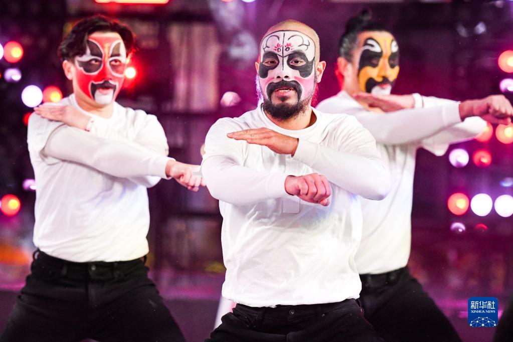 2022年12月31日,在美国纽约时报广场,来自中国香港的艺术家在跨年倒计时活动上表演。新华社发(朱子于摄)