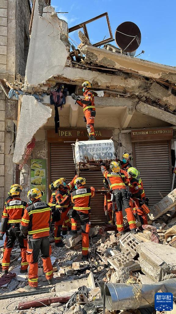 当地时间2月11日,香港特区救援队在土耳其哈塔伊省地震灾区展开搜救行动。新华社发