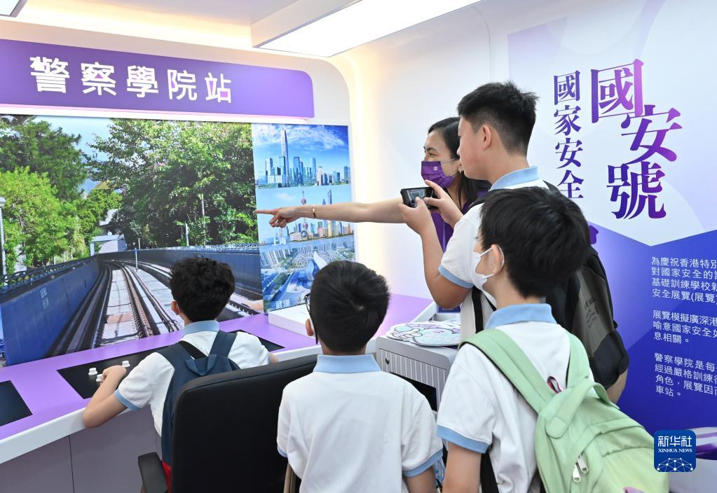 4月15日,在香港警察学院举行的开放日活动上,学生们参观“国安号”国家安全展览,并通过游戏加深对国家安全的认识。新华社发(香港特区政府新闻处供图)
