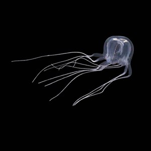 最新发现的水母样本身体透明,没有颜色,平均体宽1.5厘米,身体有4只角,每只角均连接3条长约10厘米的触手。