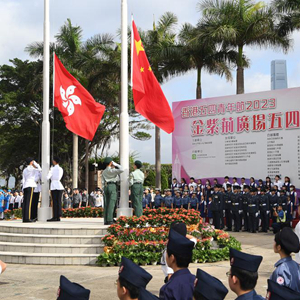 新华社香港5月4日电(记者黄茜恬 王鼎煌)为传承五四精神,发扬爱国传统,香港各界青少年活动委员会4日在金紫荆广场举行“五四升旗礼”。香港19个青少年制服团队和逾1500名学生到场观礼。