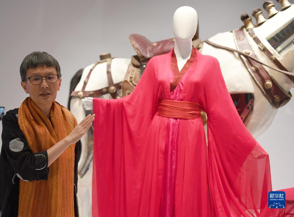 5月9日,香港资深服装造型设计师张西美在香港文化博物馆专题展览馆讲解电影服装。新华社记者 陈铎 摄