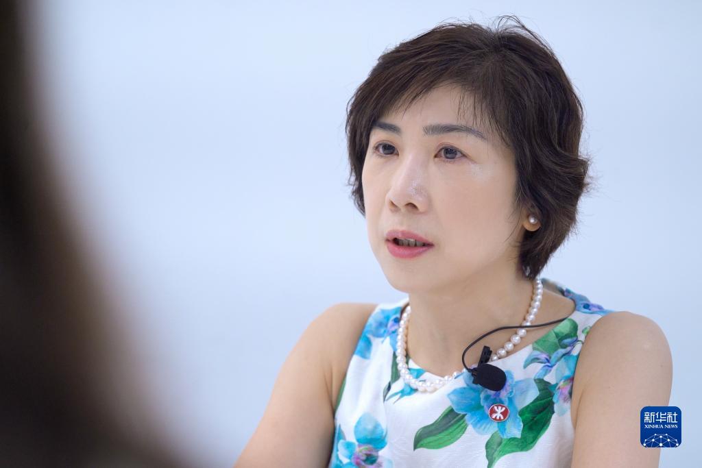 港铁公司总经理(市务及客户体验)梁静雯接受采访(7月12日摄)。新华社记者 龙镜伊 摄