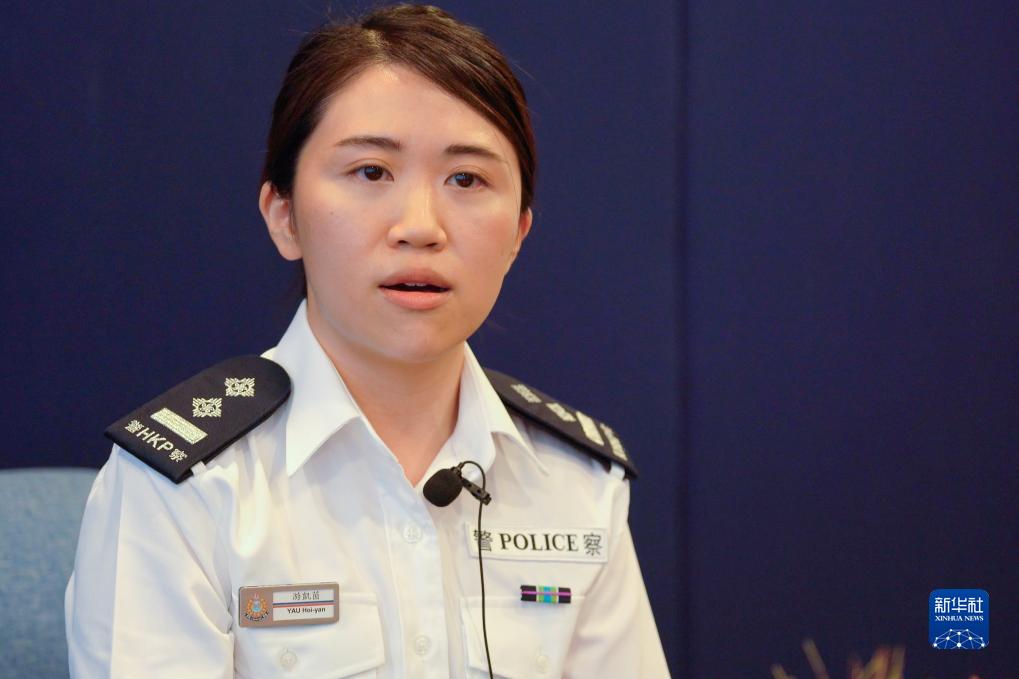 香港警务处支援科高级督察游凯茵接受采访(4月19日摄)。新华社记者 龙镜伊 摄
