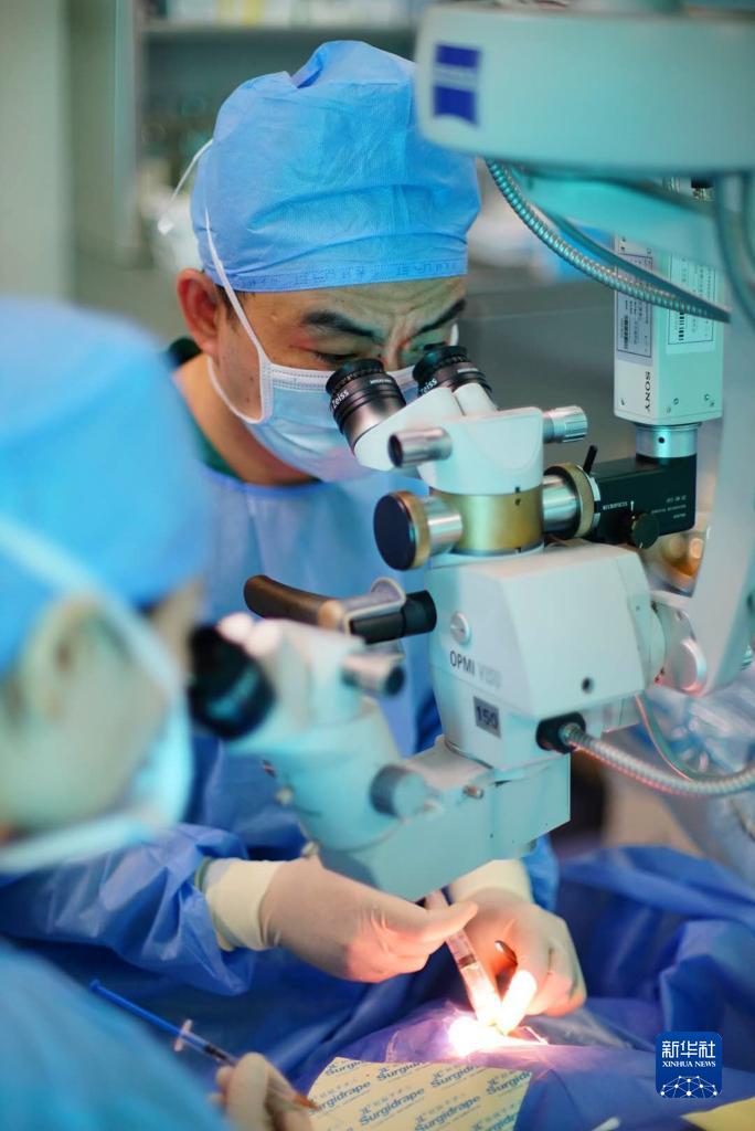 眼科医生在“健康快车”上为患者实施手术(资料照片)。新华社发