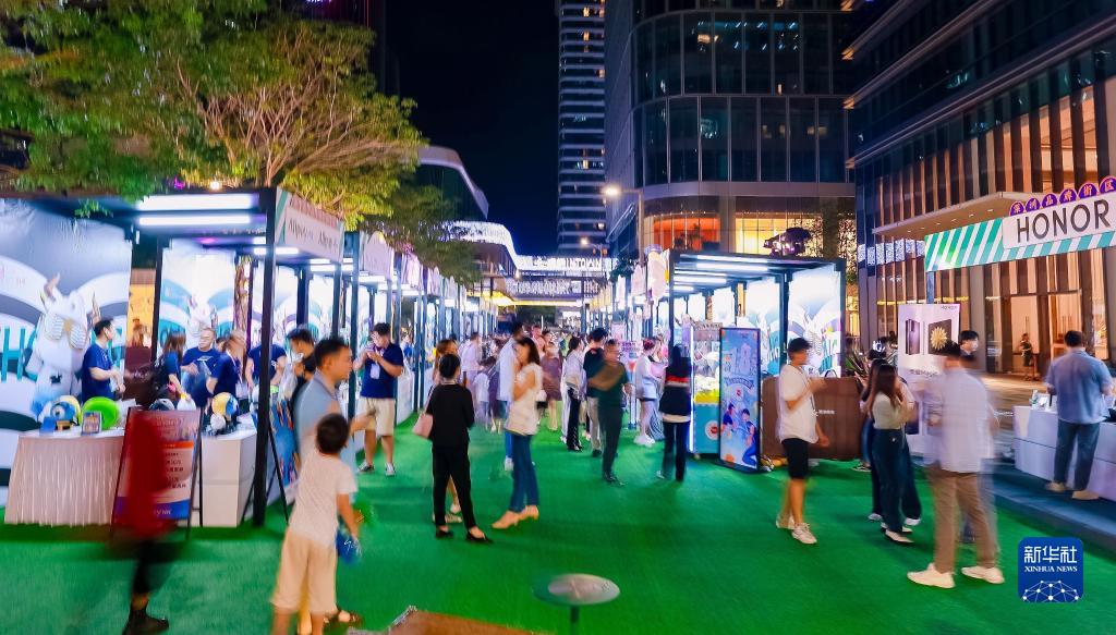 7月8日,游客在深圳盐田沙头角的“小港夜”夜市娱乐休闲。新华社发