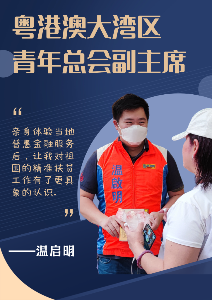 在江西腊树村,干净整洁的乡村环境、色彩斑斓的墙体彩绘和古朴的文化元素,让粤港澳大湾区青年总会副主席温启明眼前一亮。“亲身体验当地普惠金融服务后,让我对祖国的精准扶贫工作有了更具象的认识。”他说。
