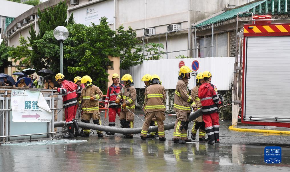 9月8日,消防人员准备清理香港黄大仙中心北馆地下层积水。新华社记者 陈铎 摄