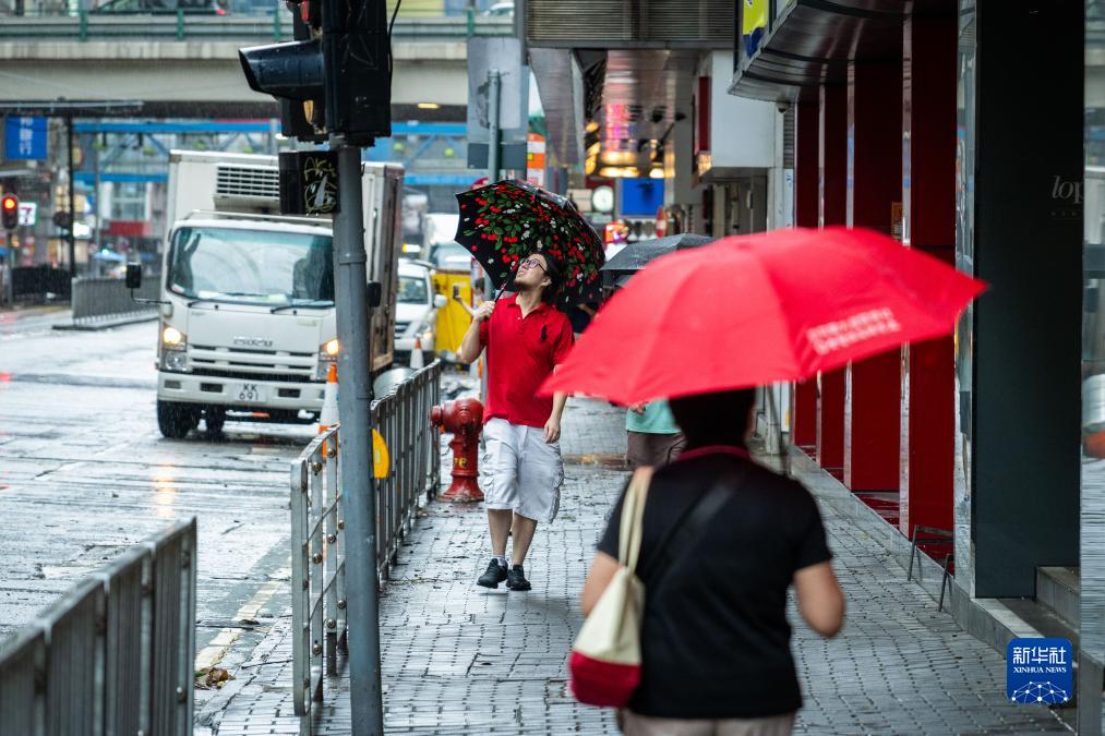 9月8日,市民撑伞走在香港街头。 新华社记者 朱炜 摄