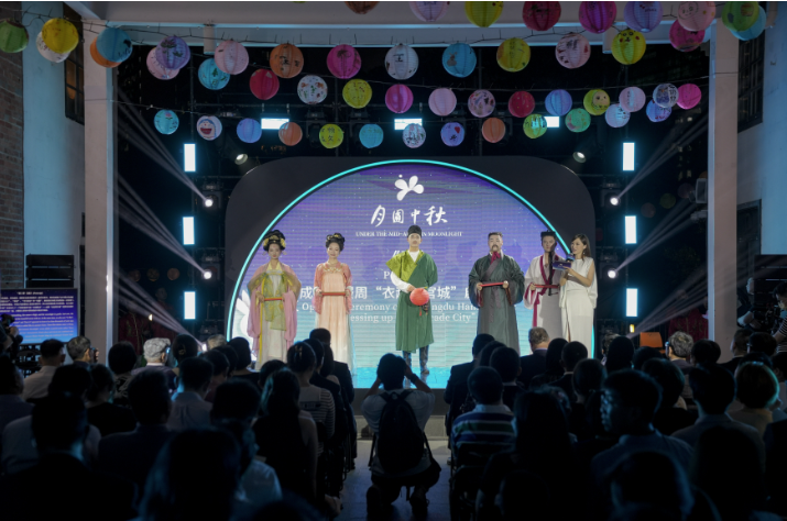 来自四川省成都市的汉服活动“衣起锦官城”的几位代表为大家送上了精彩的汉服秀。擅长将传统服饰、设计与非遗文化结合的服装艺术家郝好特意带来了三套精心设计的中秋主题汉服,带现场观众感受中式传统服装之美。今年适逢蓉港高铁开通,“衣起锦官城”也于近日迎来第二届活动,来自成都的汉服爱好者们期盼香港同胞们能到访蓉城感受川文化的魅力。