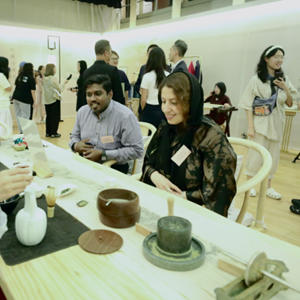 在民俗展示馆,有岭南古琴表演,有非遗点茶技艺展示,有特色糕点制作介绍;在非遗技艺传承人的指导下,多位驻港领事兴趣盎然地排队参与互动项目,写汉字,装组件,亲手制作喜气洋洋的红木宫灯。本次非遗展示还特意加入了“广绣和蜀绣”的对话环节,刺绣技艺在两种不同地域的传承中,呈现出独特的美感和韵味,令外国友人流连忘返。