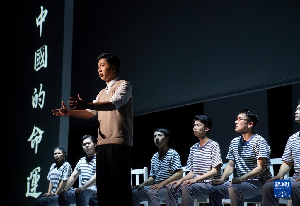 这是10月2日在香港理工大学拍摄的清华大学原创话剧《马兰花开》的演出现场。新华社记者 王申 摄