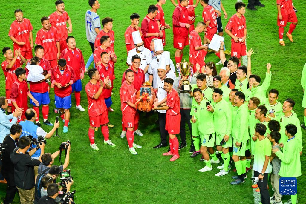 今年入夏以来,榕江(三宝侗寨)和美乡村足球超级联赛(简称“村超”)火遍大江南北,成为一个现象级赛事。8月,经常在内地比赛的香港明星足球队走进榕江,与当地村民上演了一场进球大战,前者在以4:3险胜榕江村民的同时,也将奖品——一对猪手收入囊中。
