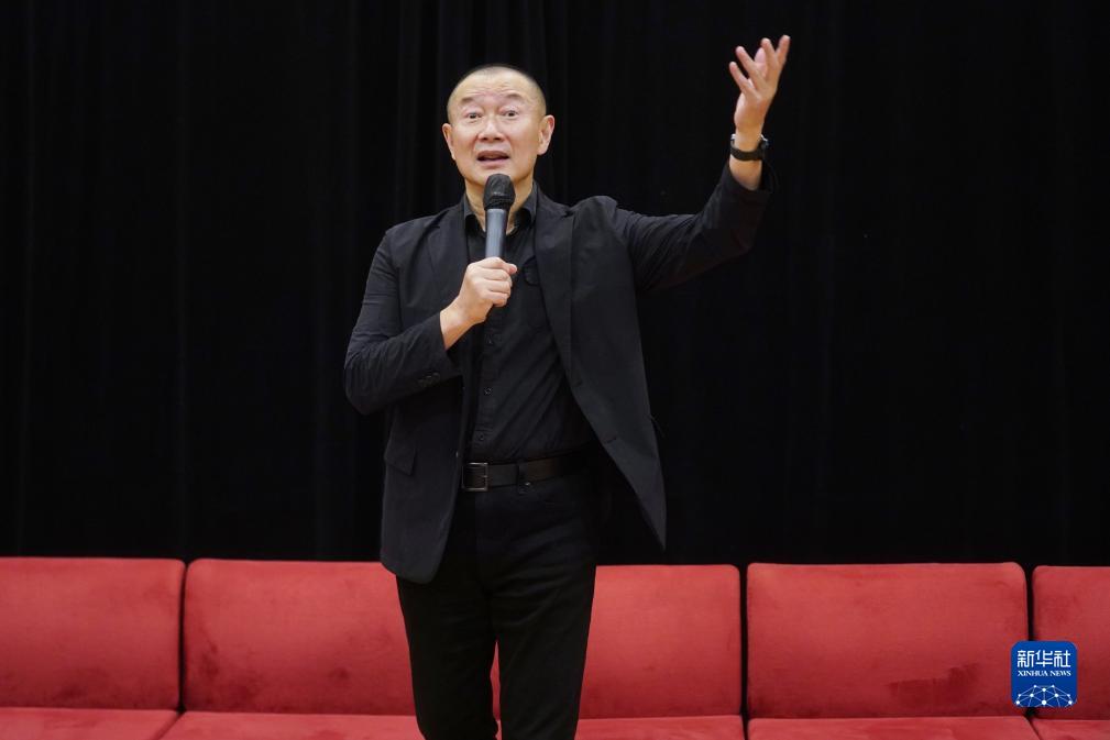 11月13日,香港文化推广大使、著名作曲家谭盾在香港文化中心接受记者采访。新华社记者 王申 摄