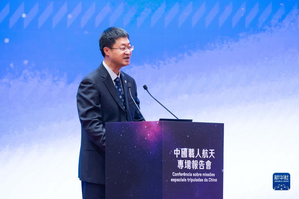 12月2日,空间站系统总设计师杨宏在报告会上发言。新华社记者 张金加 摄