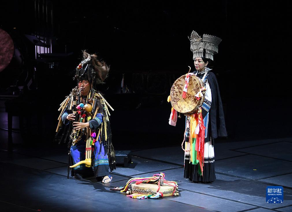 12月6日,演员在“谭盾WE-音乐节”上表演云南少数民族祭祀乐舞《茶马古祭》。新华社记者 陈铎 摄