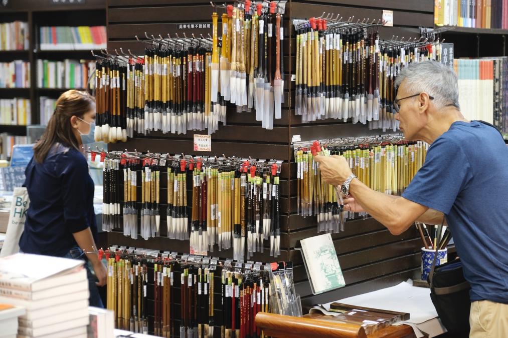 顾客在香港中华书局油麻地分局的文房四宝专区选购商品(11月3日摄)。新华社记者 王申 摄