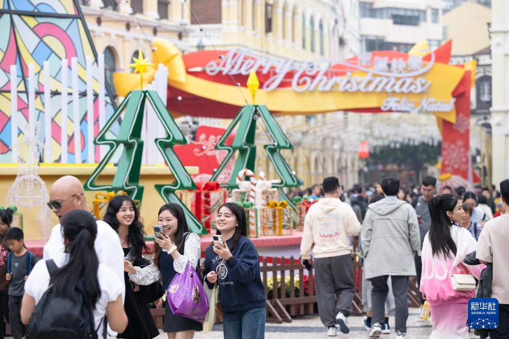 2023年12月31日,旅客在澳门议事亭前地游览。新华社记者 张金加 摄