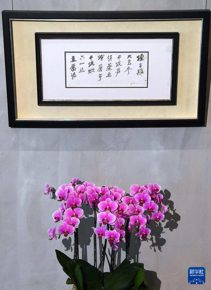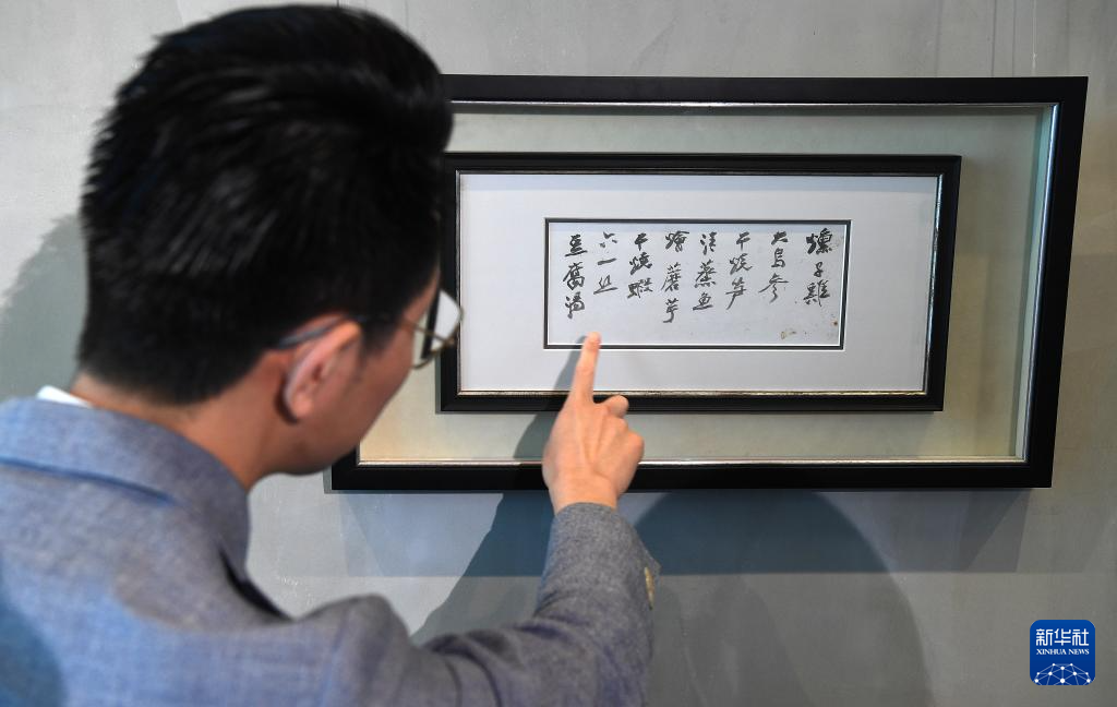 M+“CVIEW华”餐厅墙上悬挂的张大千的亲笔菜单(4月8日摄)。新华社记者 陈铎 摄