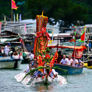 大澳三个传统渔业行会扒艇行、鲜鱼行和合心堂,在6月9日即农历五月初四早上,划着龙舟、拖着神艇,到大澳四间庙宇“接神”,请出代表杨侯、天后、关帝、洪圣的小神像。