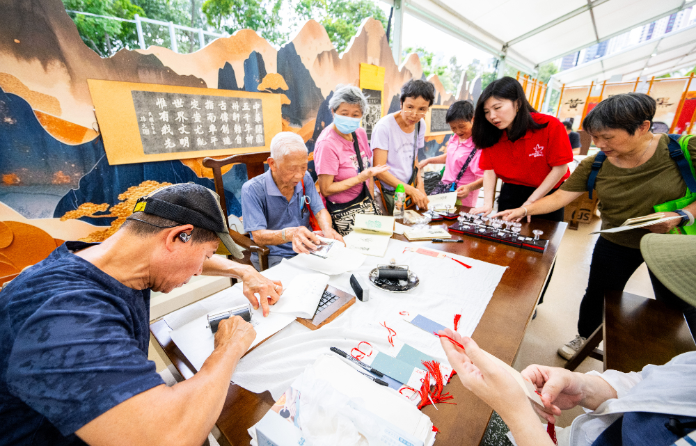 展厅同时还设置了丰富多彩的互动体验环节,观众可现场参与龙佑中华·贴龙鳞祈福、百家姓姓氏溯源、黄帝手植柏心愿牌悬挂、黄帝墨香拓印、黄帝印记手册集章等互动活动。黄陵县书法艺术家、非遗传承人等现场题写书法作品、进行黄陵特色剪纸及面花创作,让广大香港市民在亲身体验中感受传统文化底蕴,共融血脉亲情。