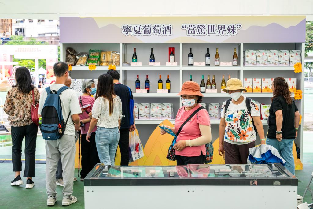 6月29日,人们在“维园庆回归”活动中了解宁夏特色商品。新华社记者 朱炜 摄