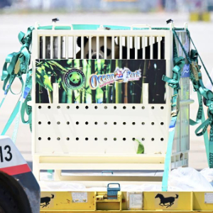 26日的香港,阳光灿烂。当专机落地停稳后,工作人员立刻登机对两只大熊猫进行健康检查。约半小时后,机舱门开启,“安安”“可可”在贴有各自照片的两只运输笼内先后经升降梯缓缓降落至搬运车,随后前往货运站。
