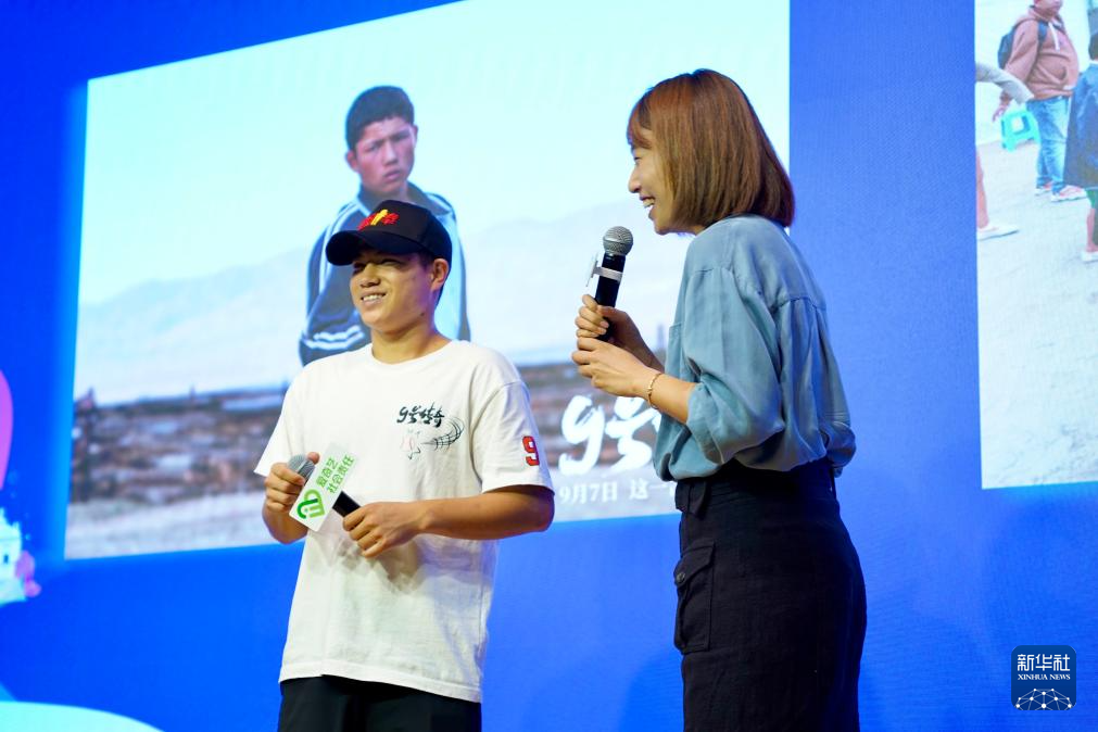 10月9日,纪录电影《棒!少年》主演马虎(左)、制片人张硕(右)与澳门学生交流。新华社记者 郭雨祺 摄