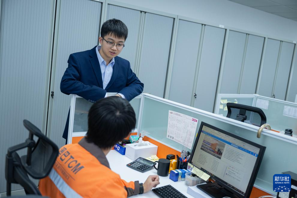 12月5日,25岁的澳门公共汽车股份有限公司会计文员许文超在工位上。新华社发(张金加摄)