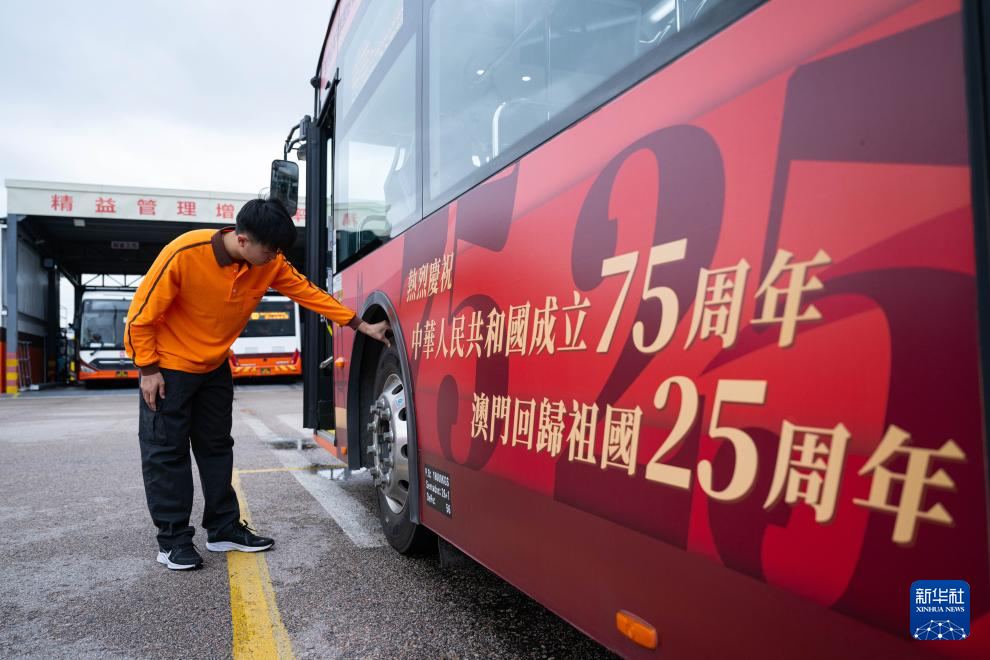 11月14日,澳巴车长林宏豪在检查车辆。新华社发(张金加摄)