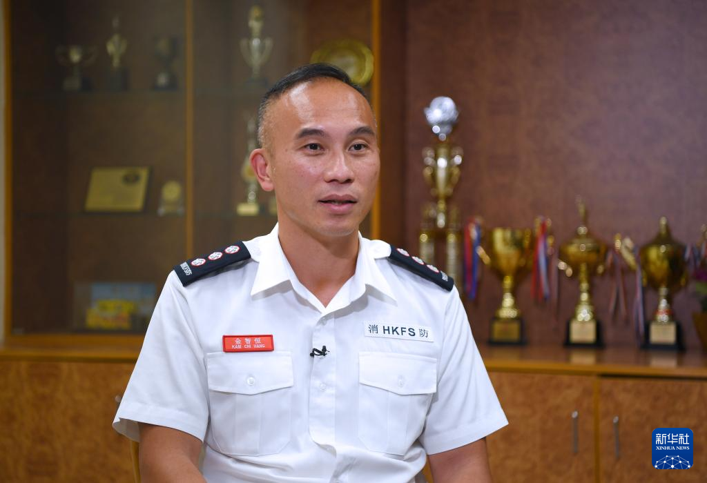 香港特区政府消防处助理消防区长金智恒接受记者采访(2024年10月28日)。新华社记者 陈铎 摄