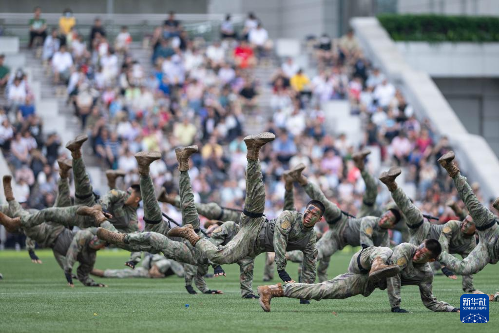 在军事课目展示环节,呐喊声夹杂着欢呼声,刺杀、格斗、反恐行动等内容轮番上阵,驻军官兵过硬的军事素质和精彩的现场表现赢得了观众热烈掌声。