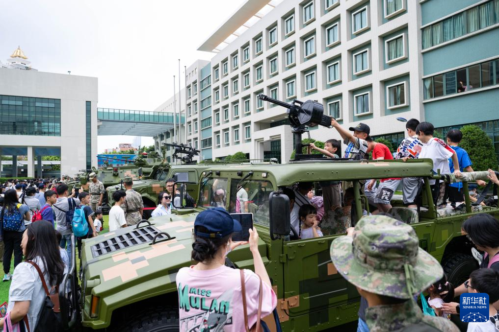 军事课目展示结束后,很多市民走进班排宿舍、连队课室以及军事展览馆等,观摩新式军服,品尝军用食品,体验厨艺技能,和官兵面对面交流互动,不少市民还与自己心仪的装备合影留念。