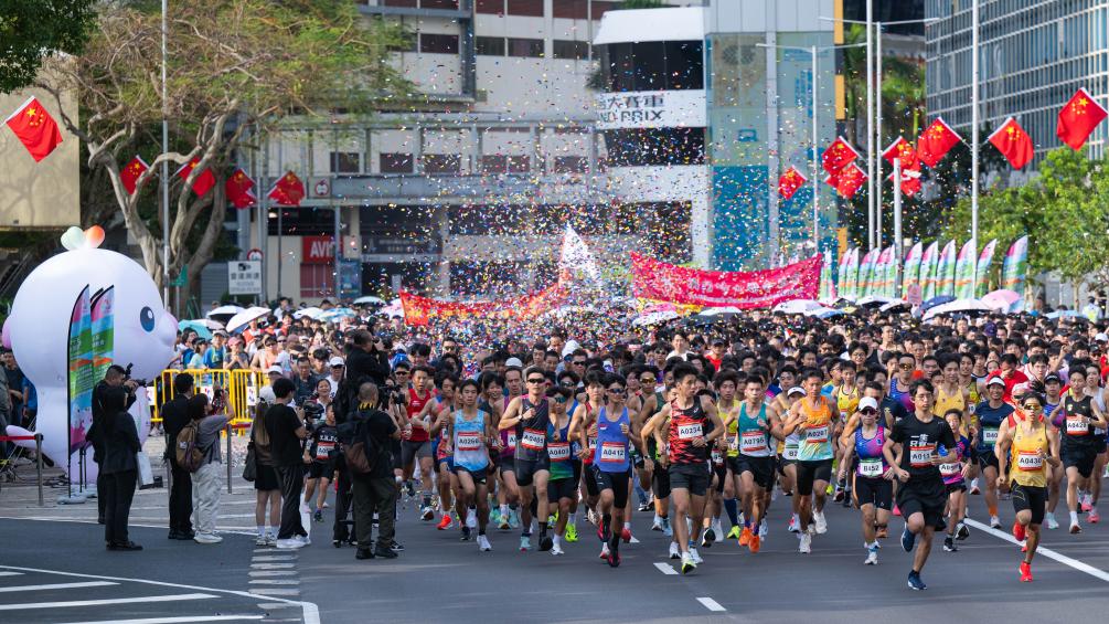 10月1日,澳门举行 “2025澳人齐贺国庆世界步行日欢乐跑”活动,庆祝中华人民共和国成立76周年。新华社发(张金加 摄)