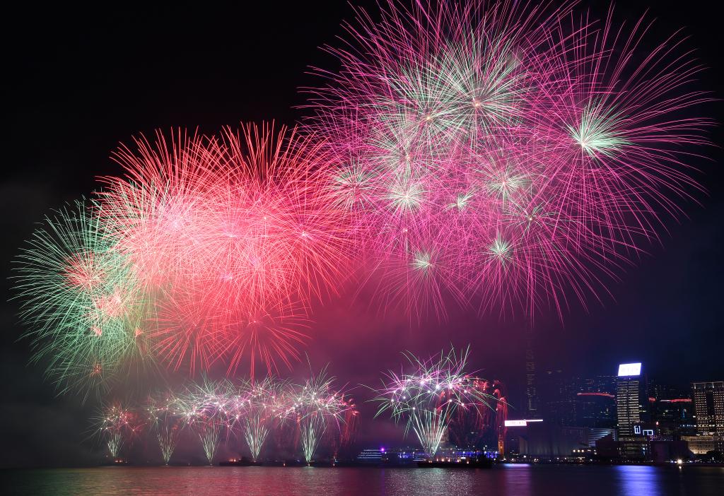 新华社香港10月1日电 题:璀璨烟花耀香江庆新中国76周年华诞